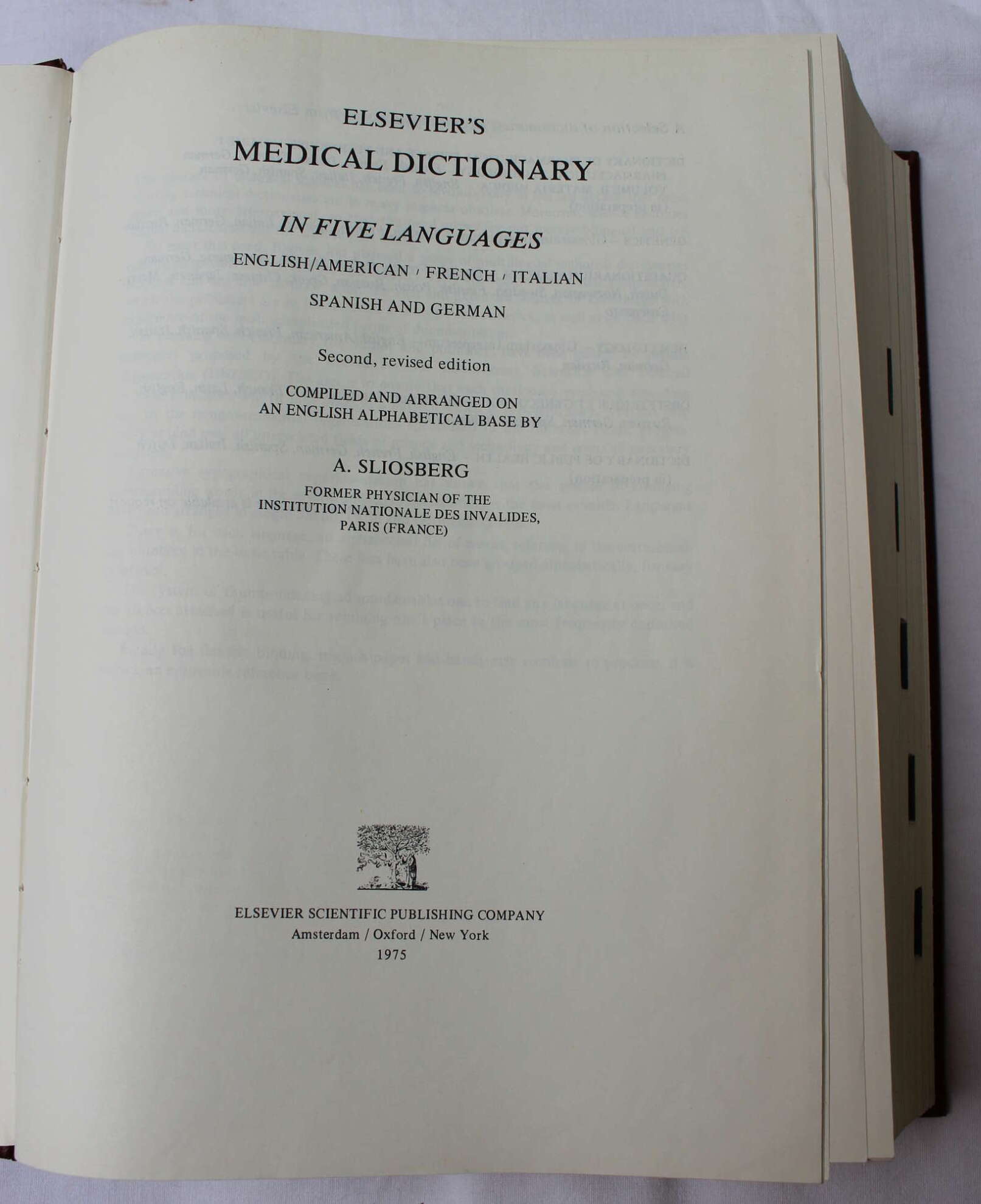 Elsevier’s medical dictionary : in 5 languages; English/American, French, Italian, Spanish and German / comp. and arranged on an English alphabetical base by A. Sliosberg