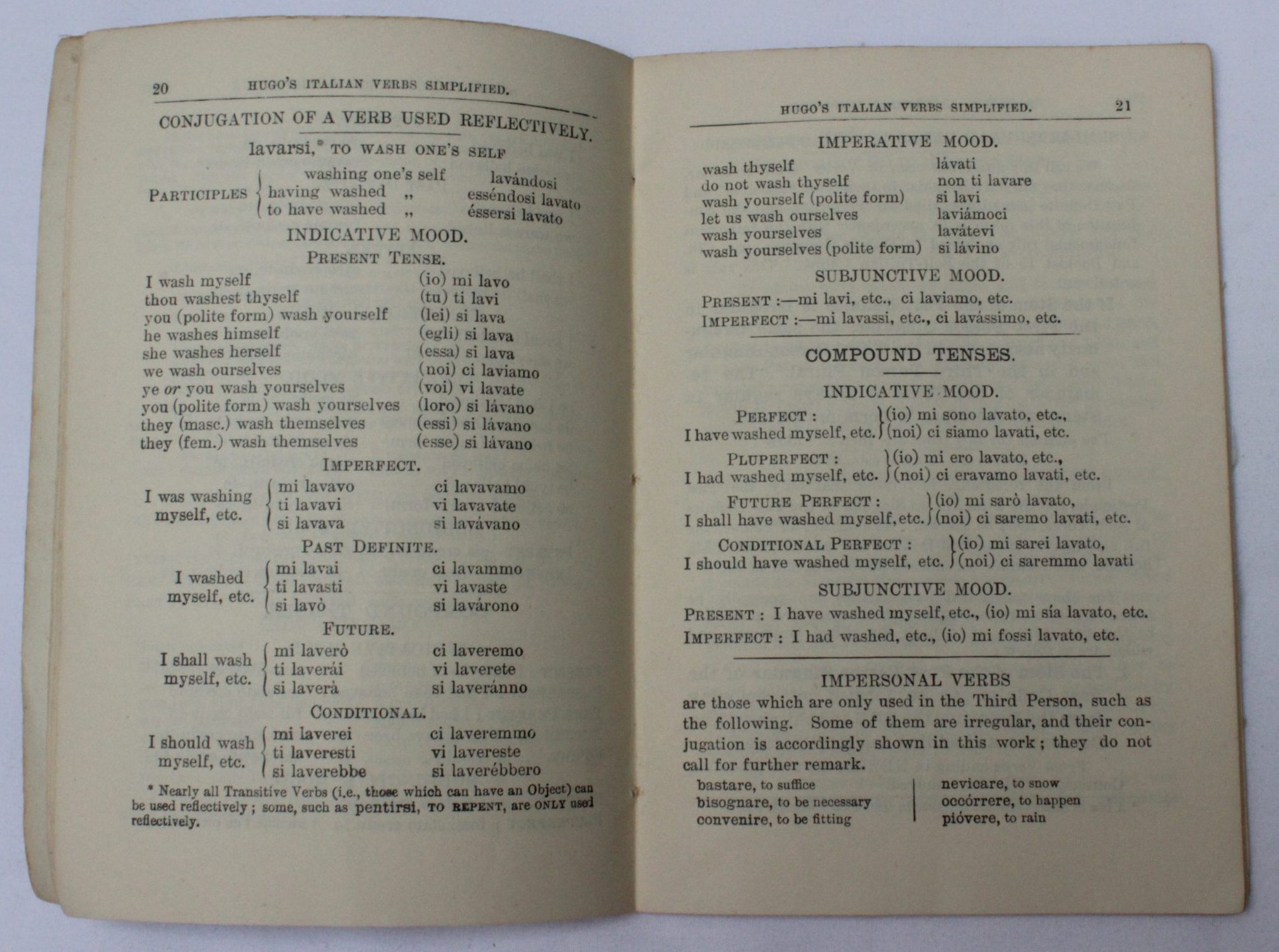 “An exhaustive treatise, containing the complete conjugation of the three classes of regular verbs, and of the auxiliaries, with table of terminations; to which is added an alphabetical list, shoeing the full conjugation of all the irregular verbs with their various forms.”