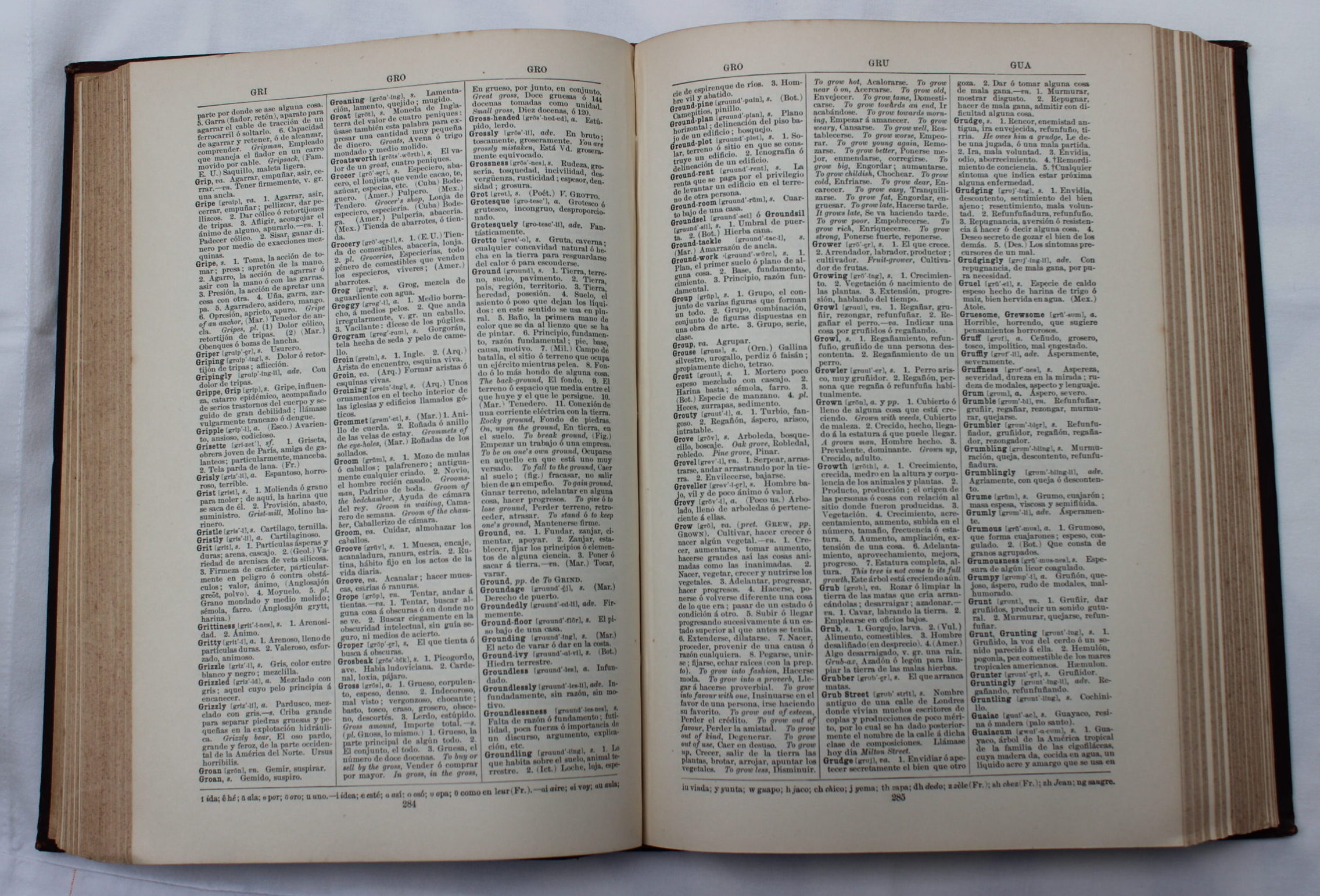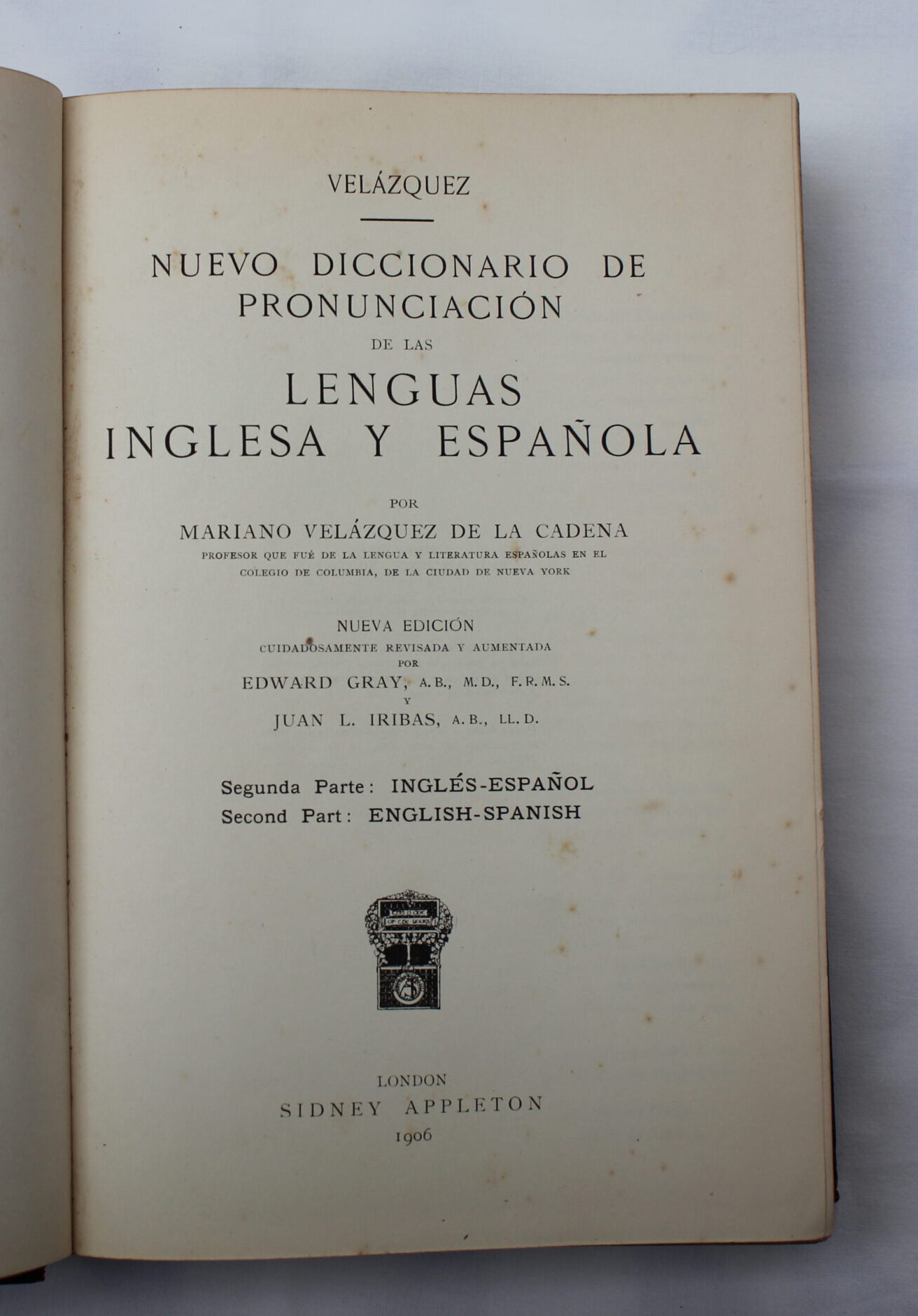 *Very old (1906) English to Spanish dictionary with synopsis of English language and hints on pronunciation. Part two ,  English to Spanish only.
