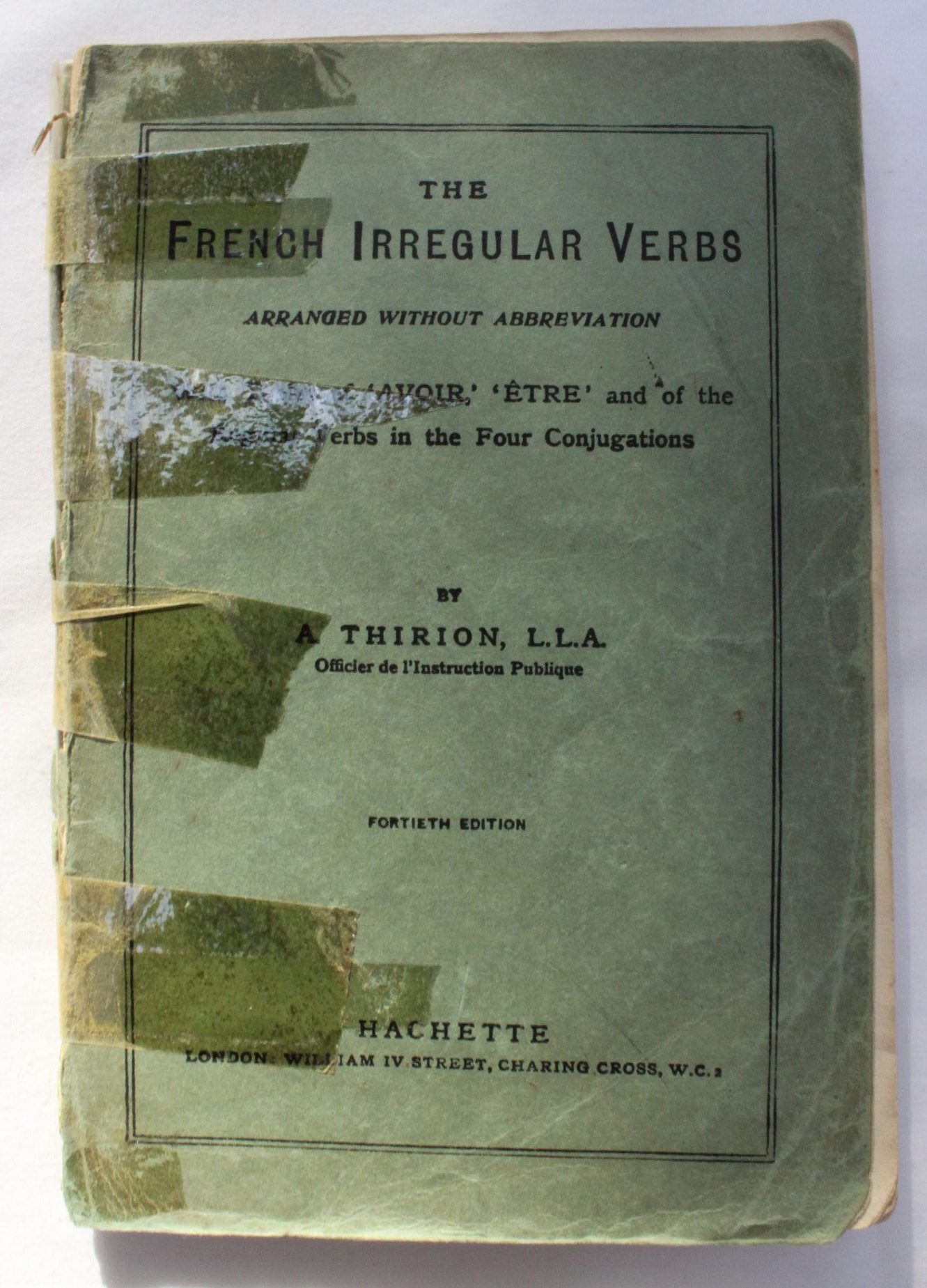 A table of the French Irregular Verbs without any abbreviation, comparison or reference, as I have taught them to my pupils with satisfactory results. In this editionI have included the Auxillary Verbs, ‘Avoir’ and ‘Être’ ; and a model of the Regular Verbs in the four conjugations will be found at the end of the Volume.