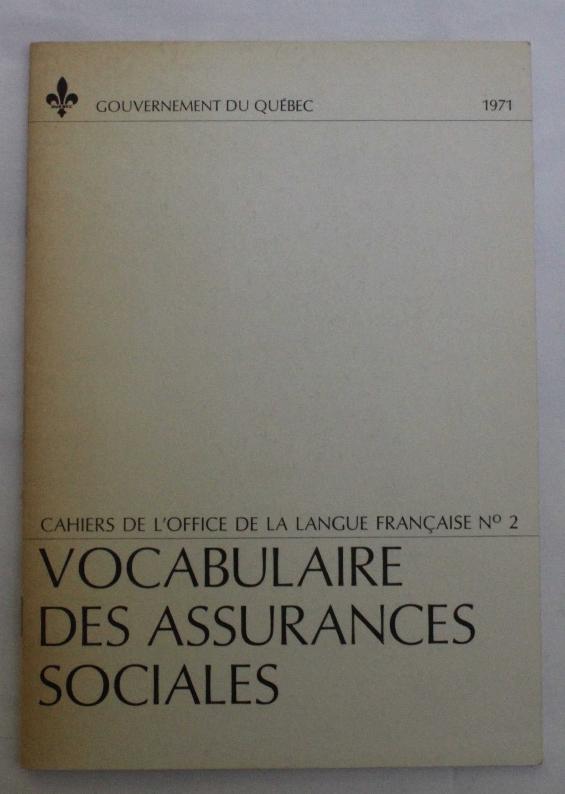 “Poursuivant son action dans le cadre de la mission qui lui a été confiée en vue d’assurer le développement harmonieux de la langue français présente aujourd’hui au public un Vocabulaire des assurances sociales préparé par les docteurs georges Desrosiers et Jacques Boulay, respectivement président et secrétaire du Comité d’étude des termes de médecine.